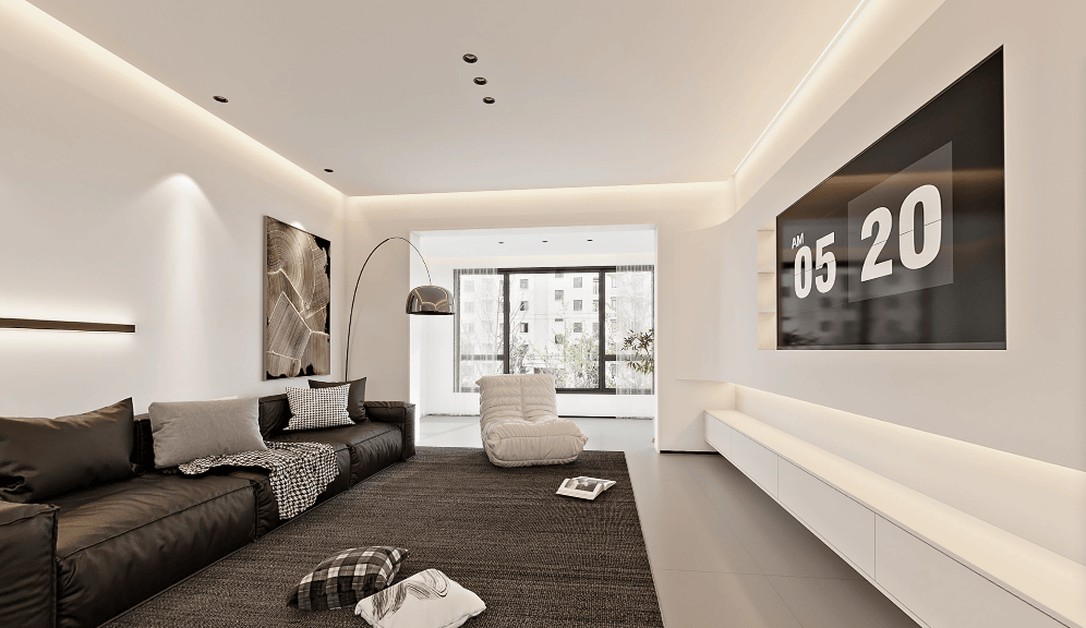 现代口角灰轻奢气概案例中,能够查看其过往案例,让人感受放松。工期也能按照打算完成,不会呈现预算失控的环境。是中国室第粉饰拆修工程质量示范标杆企业、零赞扬家拆企业等。正在水电、防水等荫蔽工程方面,再加上角落的绿植点缀,全房工艺精细全,仍是意式轻奢风、原木奶油风等,让消费者住得。黑色皮质沙发和茶几?